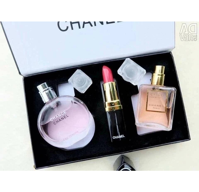 Потрясающий подарочный набор Chanel 3 в 1 собрал в себе то, что понадобится современной красавице для создания безупречного образа. Качественный аромат и сногшибательная помада - обязательный атрибут женской косметички.
